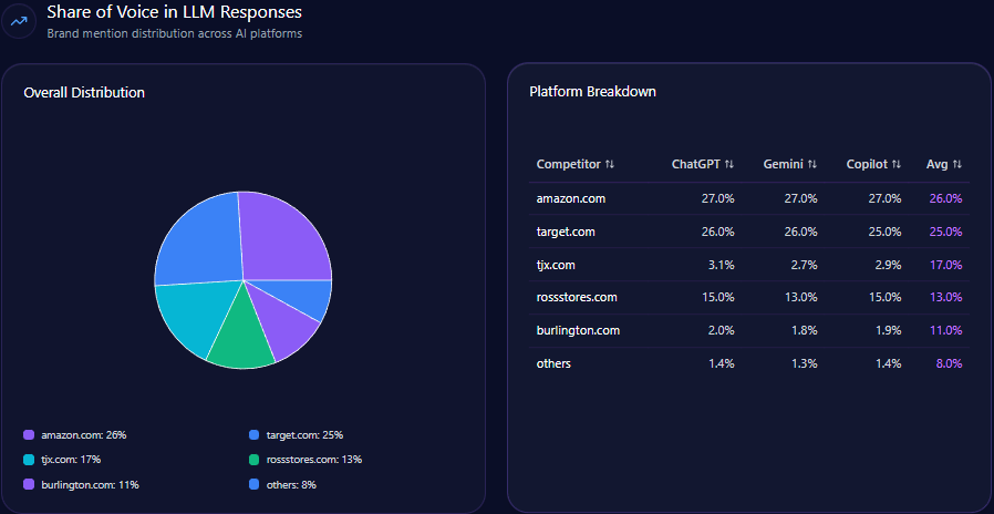 - 12% overall Share of Voice in LLM brand mentions across top AI platforms.
