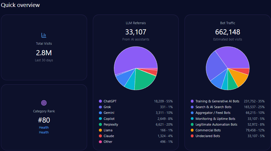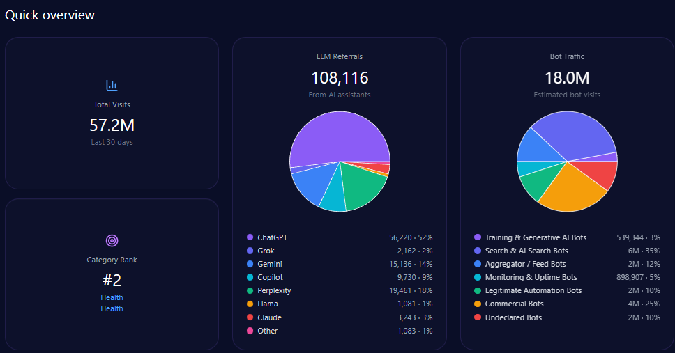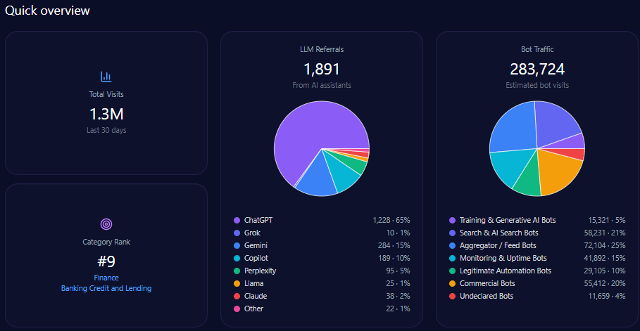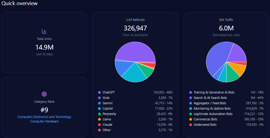 The platform’s LLM referrals total 326,947, led by ChatGPT (156,935) and Copilot (71,928), underscoring the importance of these engines to IBM’s online ecosystem engagement.